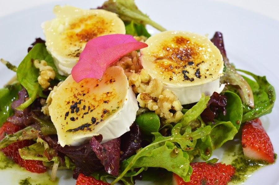 Ensalada de queso de cabra caramelizado y fresas (Yoli Pincholos)