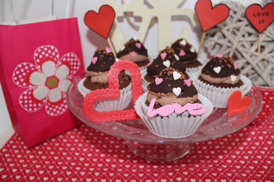 Gracias a los moldes con forma de corazón que hay en el mercado, podemos preparar postres con ese romántico aspecto, y los ingredientes que deseemos. Chocolate, fresas y/o nata (crema de leche), son un gran acierto.Cupcakes tarta Sacher (Baking with Love)
