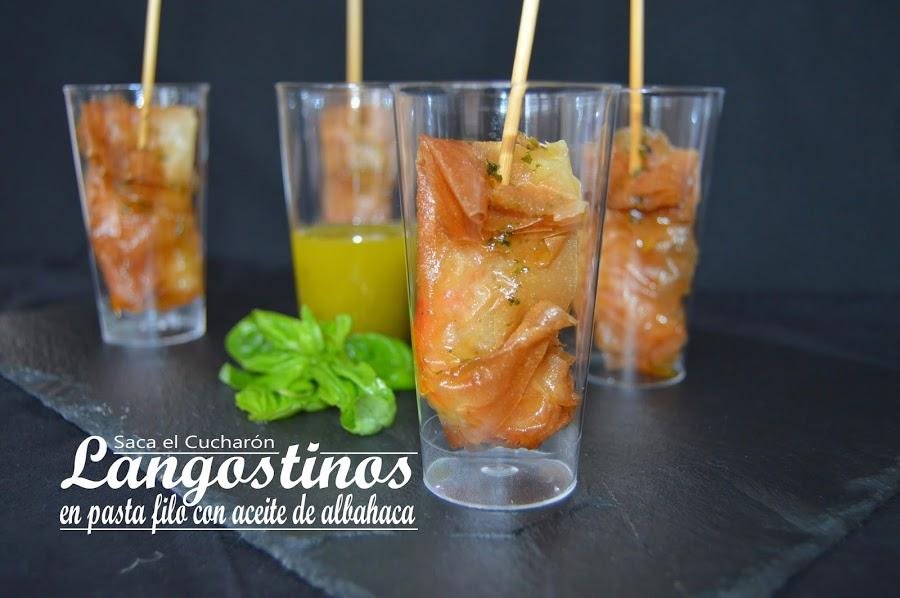Langostinos en pasta filo con aceite de albahaca (Saca el cucharón)