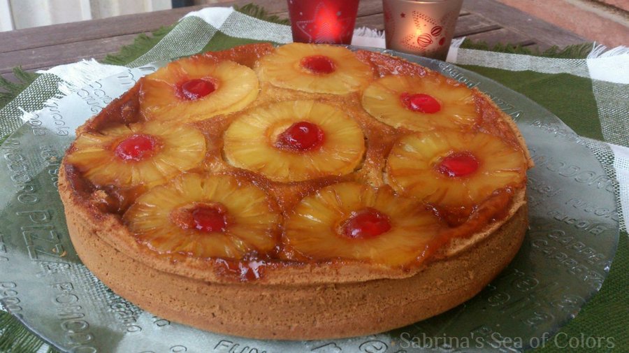 Desde mi blog Sabrina's Sea of Colors traigo esta Tarta de piña o volteado de piña como se conoce en algunos lugares. Un postre que suele preparar mucho en estas fiestas por los vistoso y colorido del resultado. Debes hacer un caramelo con zumo de piña y azúcar, pintar el molde que vayas a usar, colocar rodajas de piña y cerezas confitadas, y luego agregar una mezcla hecha con harina, huevos, azúcar y margarina, entre otros ingredientes. Tienes todo detalle en el blog, además de la vídeo-receta para que te quede perfecta!.