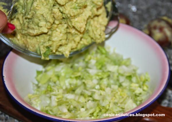 Mezclamos bien con la lechuga que abremos picado previamente muy finita.