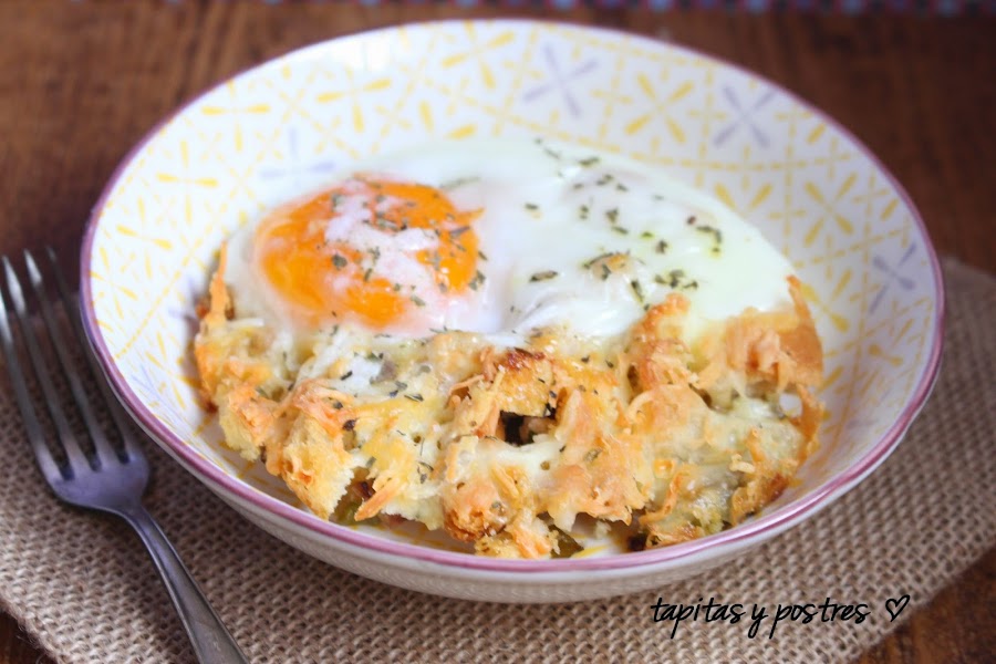 Nos puede servir de plato único acompañado de una ensalada, porque tiene verduras, pan, queso y huevo. De todo, vamos.