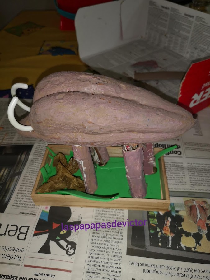 Cogemos trozos de cartón o en mi caso de una caja de zapatos y lo hacemos tamaño para que sean 4 patas, los doblamos, les ponemos papel de periódico dentro y los cerramos con celo