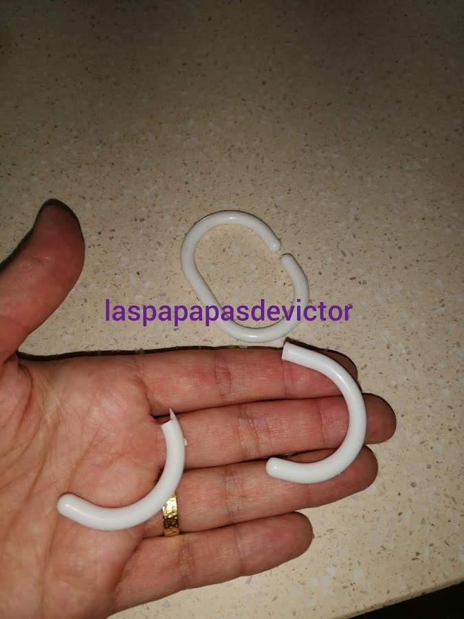 Con una argolla de cortina de baño haremos los cuernos, similar al marfil