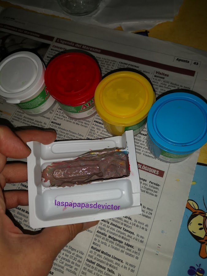 * pinturas para lograr el gris: rojo, amarillo, blanco y azul
