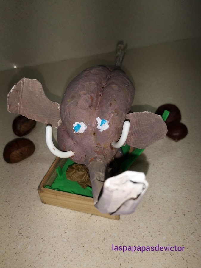 Y e puesto los tornillos para que se aguanten las patas, la trompa y la cola