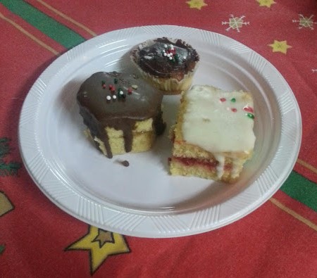 En mi caso hicimos 3: vainilla rellena de fresa cubierta con glasé; vainilla rellena de dulce de leche y cubierta de chocolate; y un mini cupcake de vainilla con frosting de chocolate negro.