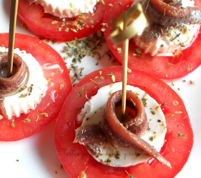 Un aperitivo muy sencillo pero presentando de una manera elegante; el tomate y el queso combinan a la perfección así que es un éxito garantizado incluirlo en tu evento.