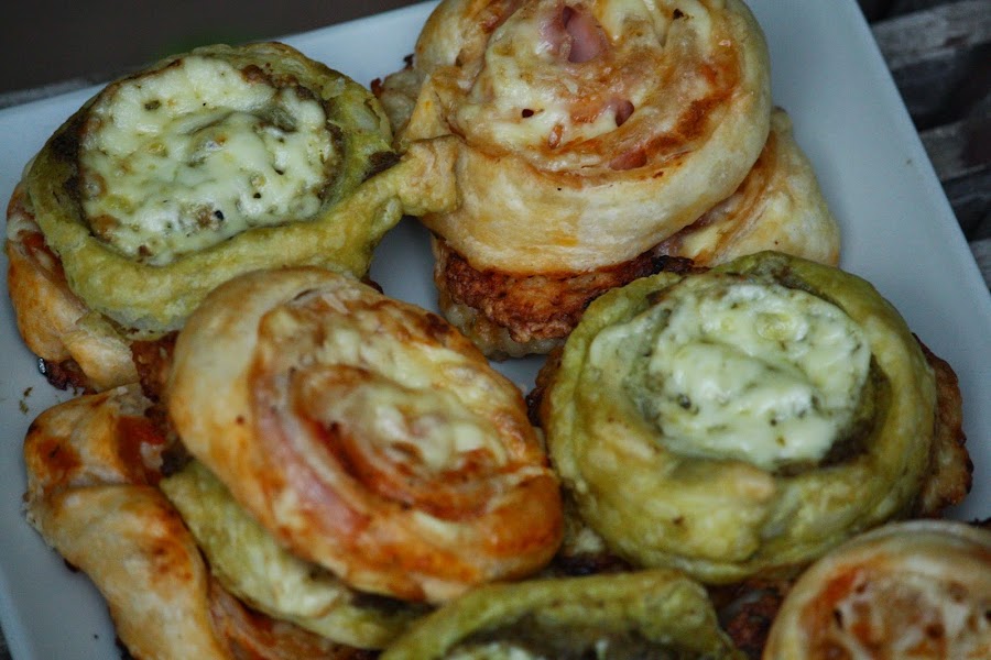Estos rollito prometen sorprendernos ya que llevan pesto y en combinación con el queso y el hojaldre lo hacen realmente irresistible a ser catados por el paladar de vuestros invitado.