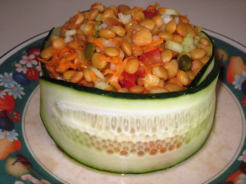 Y no puede faltar una ensalada de legumbres, Chusa del blog Bienmesabe tiene esta Ensalada de lentejas con una presentación muy original