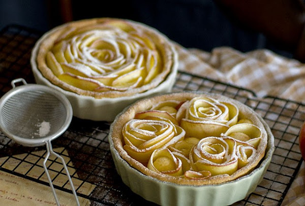 Los ingredientes son: harina, mantequilla, azúcar, sal, vainilla y huevo, con estos ingredientes preparamos la masa. Con las manzanas a gajos montamos las rosas y horneamos, finalmente solo nos queda pintar con mermelada y decorar con azúcar glas. ¿Te animas a hacerlas?