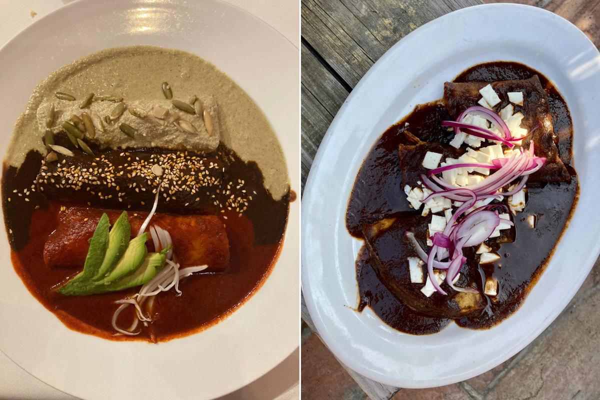 El mole es uno de los platos más famosos y complejos de la gastronomía mexicana. Se trata de cualquier tipo de carne asada (generalmente pollo) acompañado de una salsa color chocolate que se elabora en base a muchas especias, chocolate amargo, diferentes tipos de chile, jitomate, frutos secos, cebolla y ajo.Aunque entre Puebla y Oaxaca existe la eterna rivalidad por el mole (cada cual piensa que el suyo es mejor que el otro) la verdad es que nosotros probamos ambos y están los dos riquísimos.