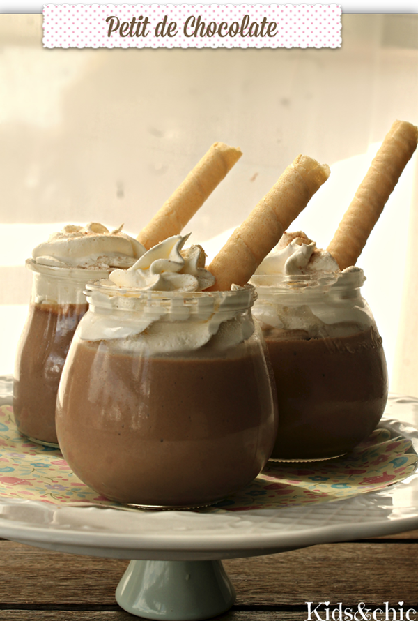 1- Petit de chocolate -kidsandchic. Todo un clásico que siempre triunfa en cualquier celebración . Con queso crema , gelatina , nata montada (crema de leche) y por supuesto chocolate . En menos de 1 hora puedes tener listo este rico postre .o incluso dejarlo preparado con antelación . receta de petit de chocolate