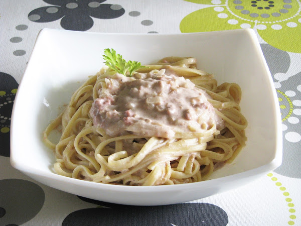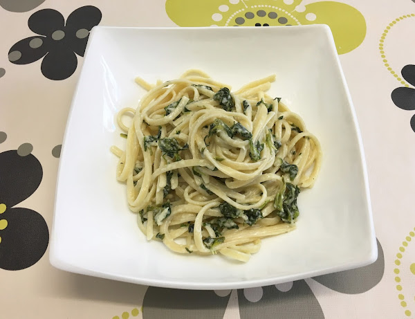 Tallarines con salsa de queso y espinacas