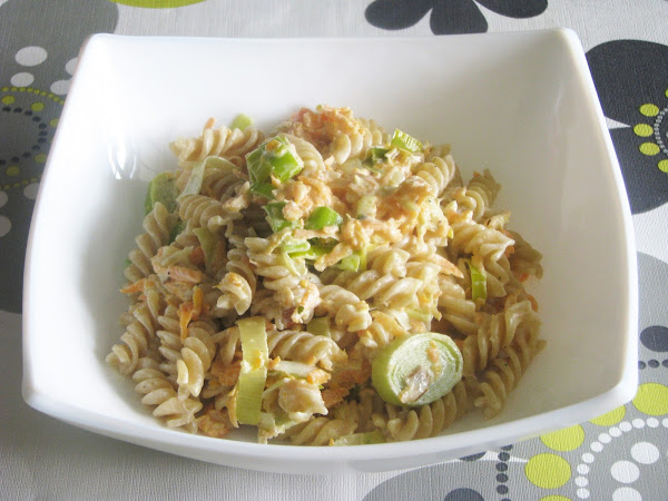 Fusilli con salsa de zanahoria y puerros