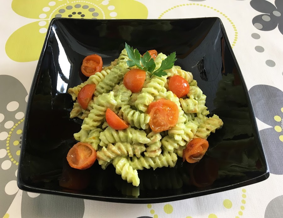 Fusilli con pesto de aguacate