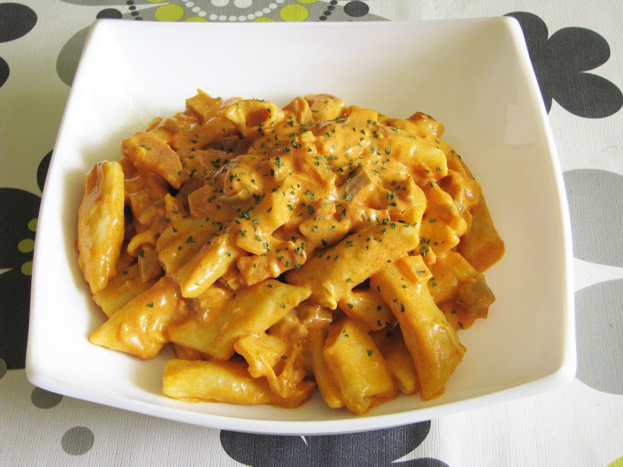 Macarrones carbonara al curry