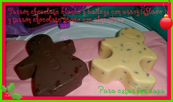 Del blog de Chus, "Para estar por casa", me he traído Turrón de Chocolate Blanco y Bayleys y Turrón Chocolate con Almendras, dos mejor que uno!!
