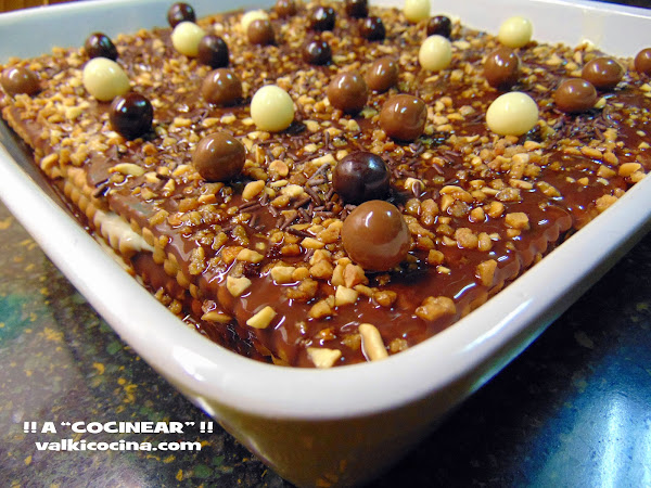 Si queréis una tarta rica y fácil de hacer esta es tu tarta para hacerla necesitaremos galletas, natillas de chocolate, natillas de vainilla, leche y decoración al gusto.