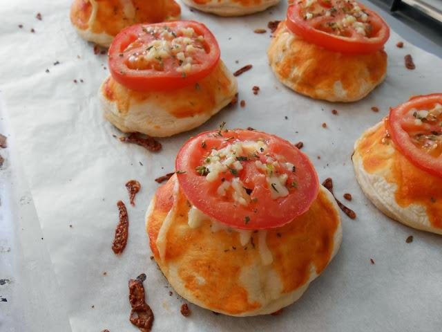 En el blog Mi Mundo Pincake nos presenta unas pequeñas pizzas ideales para algún evento especial. Necesitareis una base de pizza que cortareis en formas redondas y pequeñas. Extendemos en cada base una capa de queso rallado, jamón. Tapamos con otra base de pizza pequeña le colocamos tomate frito y una rodaja de tomate fresco. Horneamos y servimos caliente. En el blog podrás ver un paso a paso muy bien detallado y puedes acceder haciendo clic a continuación: