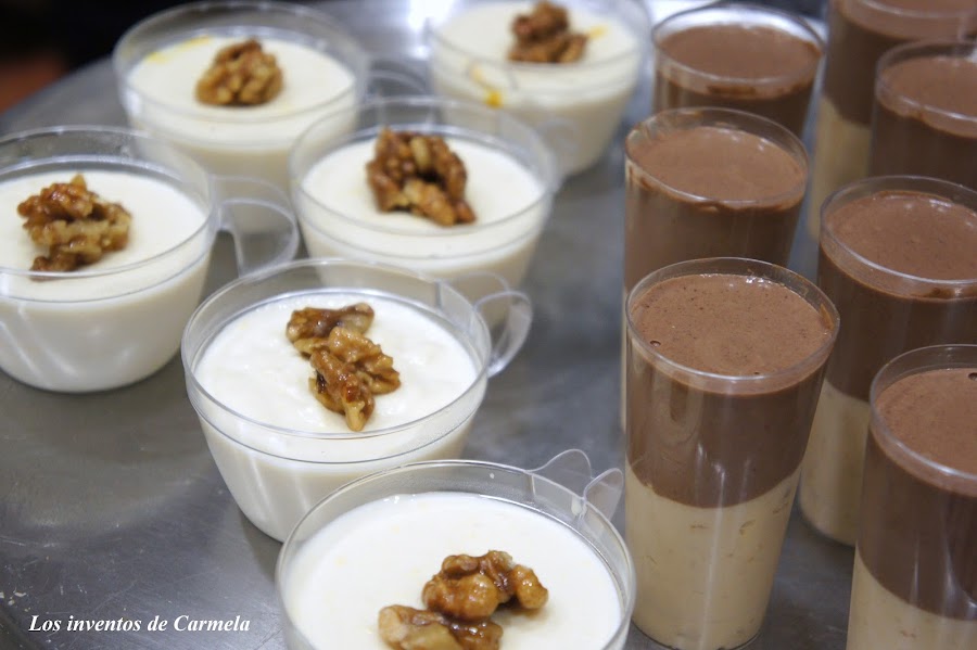 Para la comunión de mis sobrinos elegí recetas fáciles y que pudiera hacer con tiempo, en este campo entran flanes, pudines, tartas de queso, tartas de galletas, brownies, etc. ...evidentemente, todo será a gusto de los propios comensales es por ello que me parece ideal una mesa de postres variados bien servidos de forma individual en sus vasitos. En estos días seguiré poniendo más ideas para fiestas, en el blog tenéis muchos más vasitos y dulces así como en el blog de La panadería de Carmela.