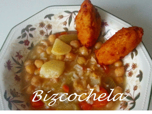 Chela (del blog "Recetas, ¡y a cocinar se ha dicho!") ha preparado el puchero de su madre, con unos croquetones que "quitan el sentío", ¡qué cosa más rica!.
