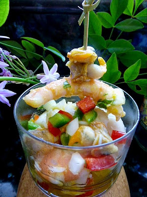 El salpicón de marisco tampoco suele faltar en estas fiestas. Cada uno lo hace a su manera, pero este salpicón del blog COCINA CON VISTAS es fantástico y además con una presentación chulísima.