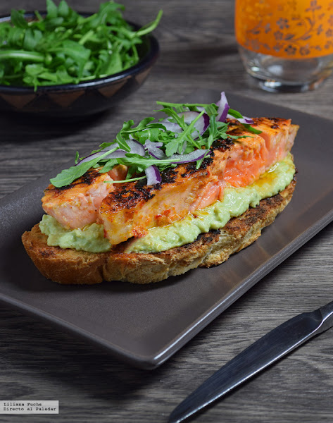 No debemos olvidarnos de tomar grasas saludables, y la combinación de salmón con aguacate estará ya muy vista pero funciona de maravilla. La clave de esta receta está en embadurnar bien el pescado con una salsa picante. La receta es de Directo al Paladar