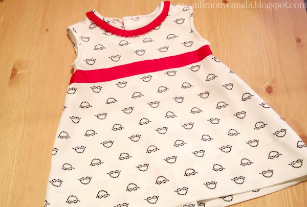 Por último, en el tema de manualidades, tengo que decir que he empezado con una nueva actividad: estoy aprendiendo a coser. Los Reyes Magos me regalaron una máquina de coser, y era cuestión de días apuntarme. Para empezar, un vestido de corte evasé para Martita, que acabo de terminar y que os quería enseñar:
