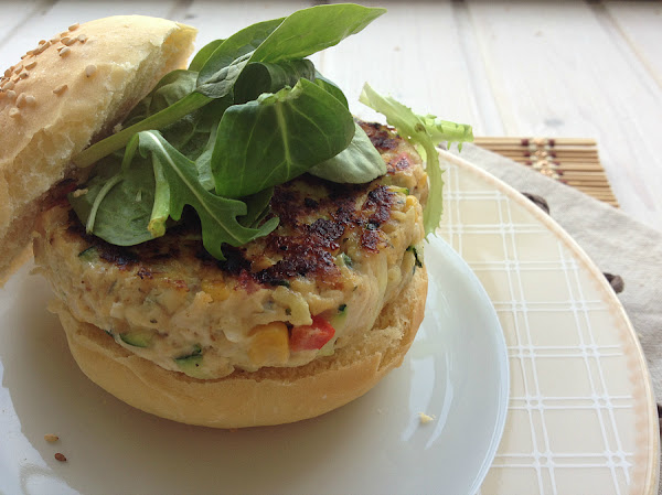 HAMBURGUESA DE POLLO CON CALABACÍN Y MAÍZ