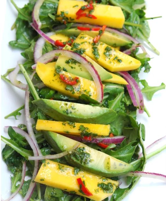 11. Ensalada de rúcula con mango y palta (aguacate)