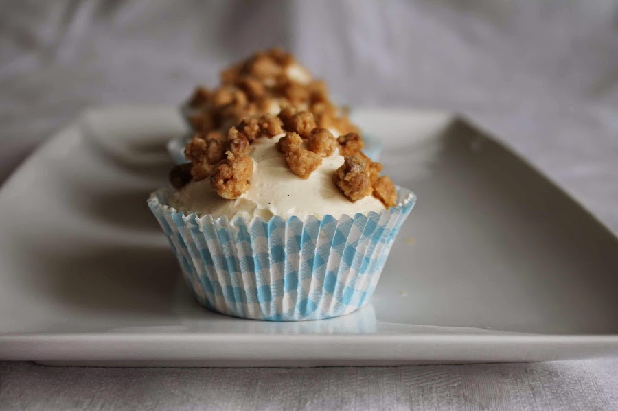 9.- También es posible usar los albaricoques y frutas de temporada en la elaboración de los cupcakes. Cakes a medida nos presenta sus cupcakes de albaricoque con crema de mantequilla de vainilla y crujiente de chocolate blanco que me han gustado bastante por su concepto y presentación.