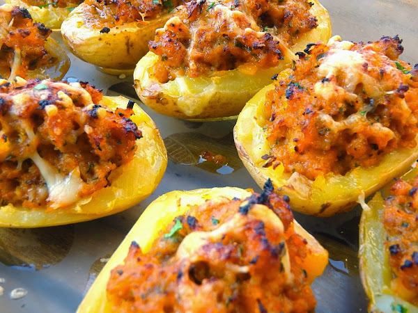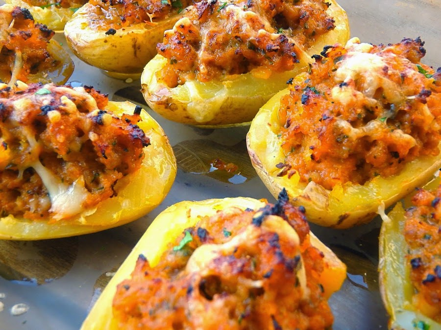Patates farcides de carn a la bolonyesa - Patatas rellenas de carne a la boloñesa