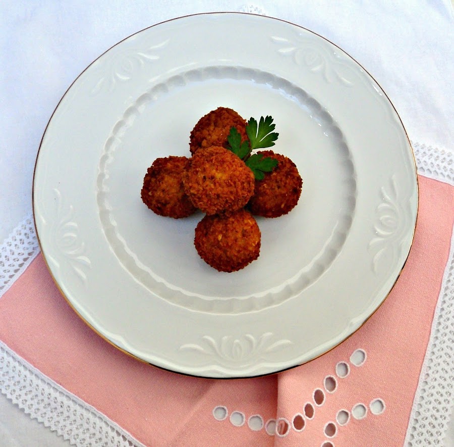 Jesús, tiene un pequeño bocado de queso con frutos secos. ¡Muy cremoso y lleno de sabores!! Bolitas de queso: (Aquí)Croquetas de pollo