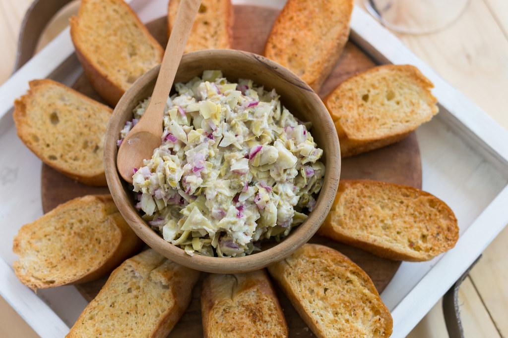 Tenía que compartir con ustedes esta delicia que ya ha sido validada (y alabada) por mis amigos y familia. Con ustedes el nuevo éxito en sus mesas de aperitivo: bruschettas con dip de alcachofas.