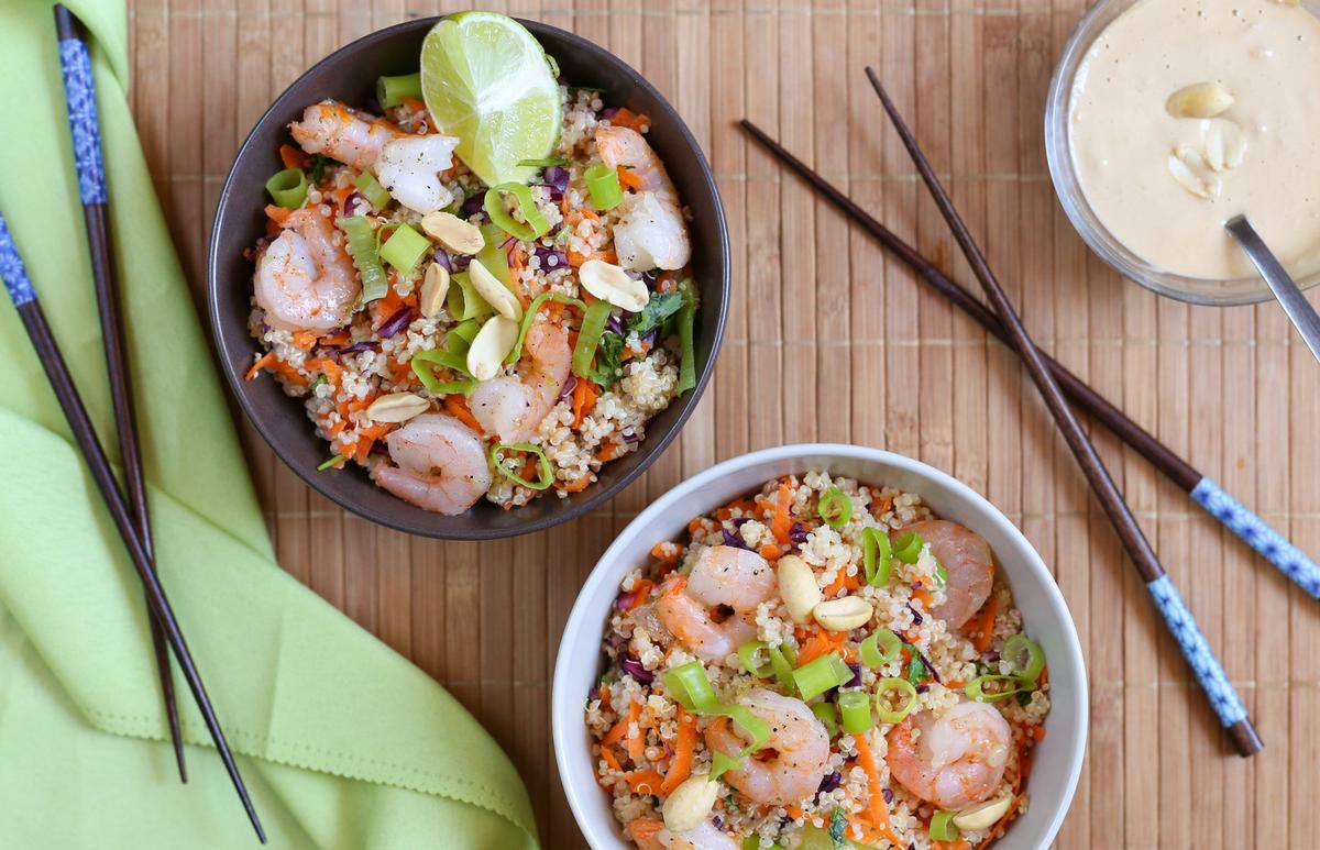 8.Ensalada de quinoa estilo thai con camarones y salsa de maní