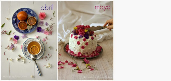 Como no podía ser de otra manera, la foto de Mayo tenía que tener muchas flores y por eso os dejo esta tarta de fresas y rosas, cuya receta publicaré mañana, a más tardar.