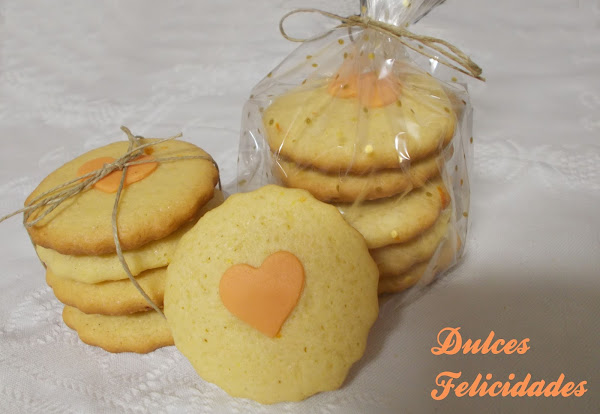 Galletas de naranja con corazones de fondant de esta fruta
