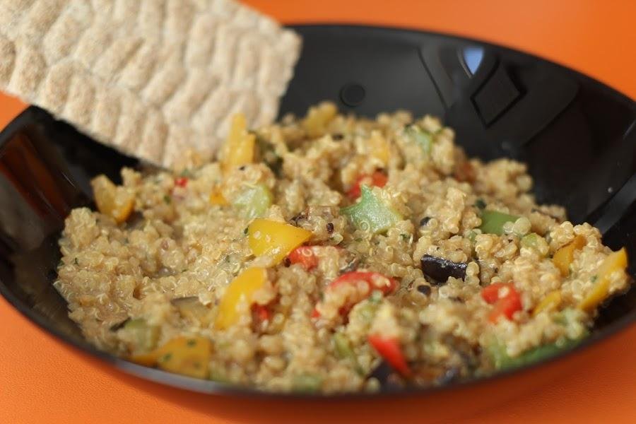 La autora de Viviendo Analógicamente participó con un post con dos recetas con berenjena. De ambas, os destacamos este risotto hecho con quinoa en lugar de arroz y que se acompaña con distintas hortalizas entre las que no falta la berenjena.