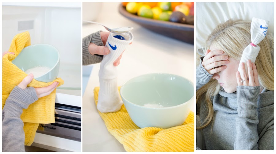 Coloca sal marina dentro de un recipiente apropiado para microondas durante 3 minutos. Luego extrae la sal y colócala dentro de un calcetín. Aplica compresas sobre la zona que sientas dolor. Aclaración: Si la sal marina no se ha calentado, vuelve a calentar durante unos pocos minutos más.