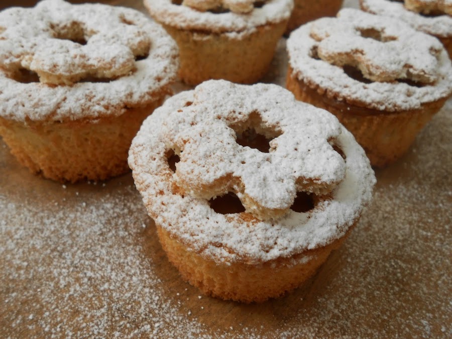 Una forma de hacer y presentar unas magdalenas, no caben duda de que lucen delicadas, además que, la base del bizcocho es tipo genovés y el relleno le da su toque especial.