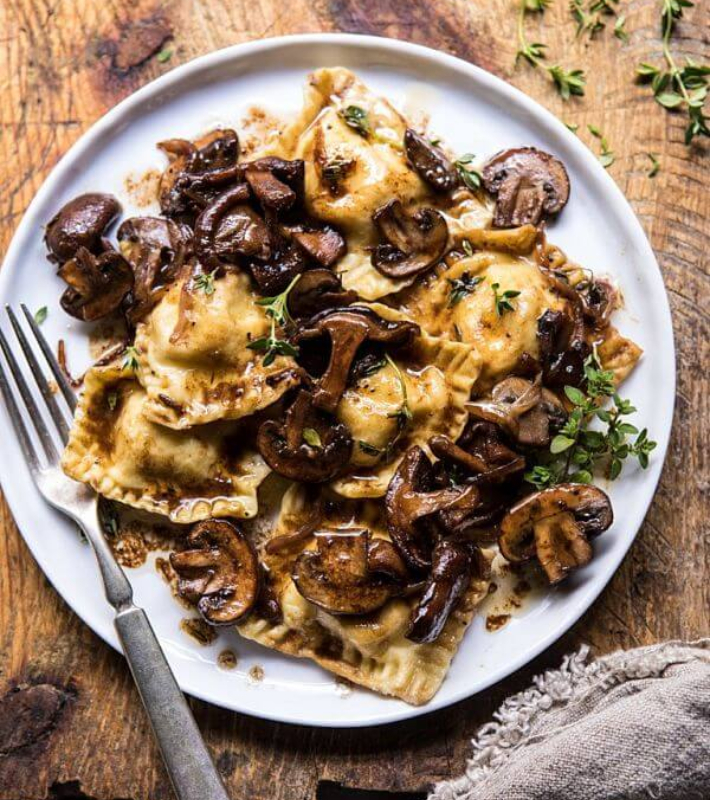 Es época de setas, por ello no podemos empezar este recorrido por diferentes recetas de otoño, sin incluir las setas. Este revuelto con calabacín sobre una tostada de pan con pimientos es un recurso perfecto para crear un aperitivo o cena rápida ligera. La elaboración e ingredientes en este enlace.RAVIOLIS DE CHAMPIÑONES