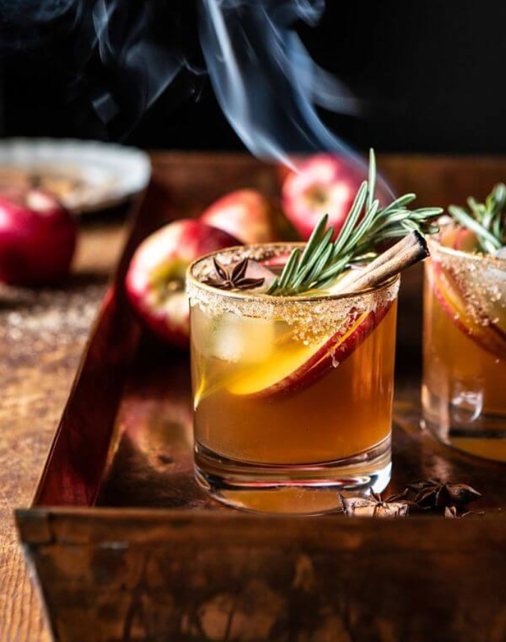El Margarita es un cóctel mundialmente famoso elaborado a partir de tequila, triple seco y zumo de lima. Esta es su versión más cálida con un chorrito de licor de naranja, sidra especiada, un toque de limón y sirope de arce. ¿Quieres darle un toque especial? Decórala con romero fresco, rodajas de manzana y una ramita de canela humeante. Pura magia.
