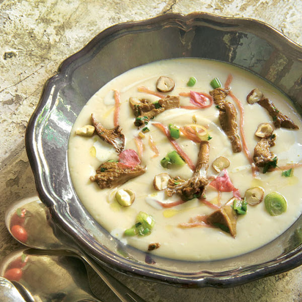 Para los que no os importa aportar unas pocas más de calorías a las cremas, os propongo esta receta de crema de alubias blancas, jamón, níscalos y avellanas al aceite de trufa.