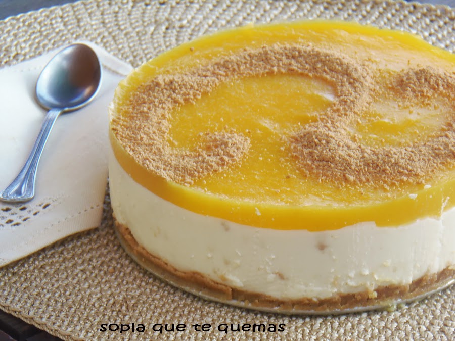 Sopla que te quemas: Tarta de queso y chocolate blanco con gelatina de mango