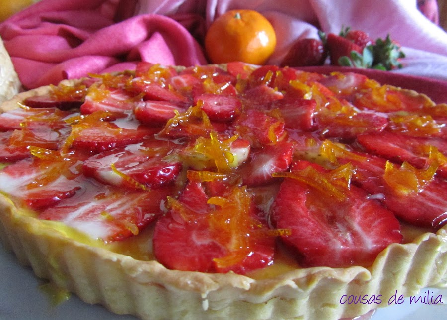 Cousas de Milia: Tarta de fresones con crema de naranja
