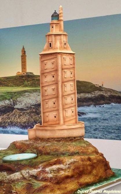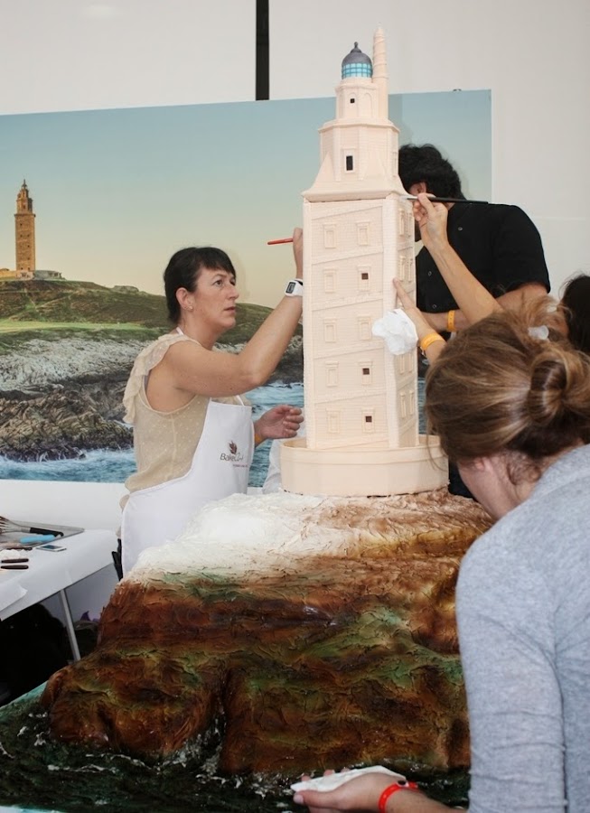 Y para terminar os muestro la tarta que hicieron los profesionales que asistieron a la feria, como no podía ser de otra manera, realizaron a todo lujo de detalles la Torre de Hércules, el monumento más importante de la ciudad.