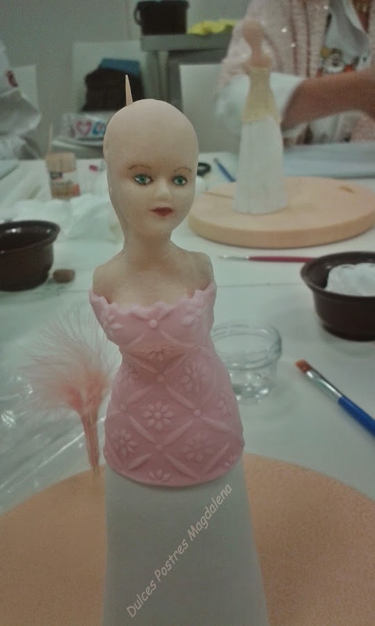 Es mi primer modelado. La muñeca está hecha con pasta de goma, a excepción del pelo que está hecho con glasa.