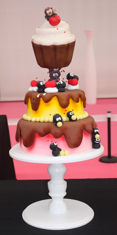 En esta primera foto podéis ver como no hay diferencia entre la real y la tarta. Han hecho un gran trabajo, y además puedo dar fe de que estaba súper buena, bizcocho de chocolate con un relleno de fresa ummmmm para chuparse los dedos.