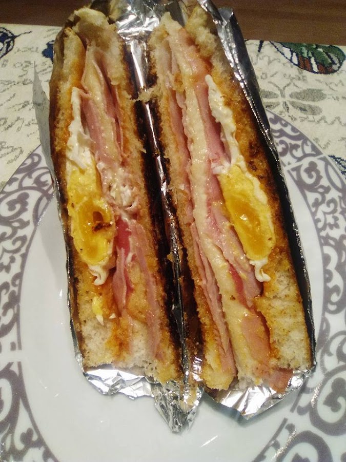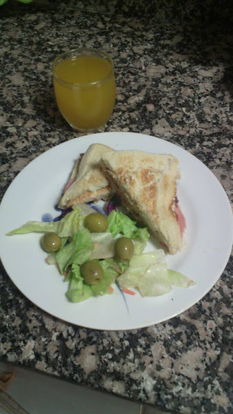 Trinidad Sala Redondo nos trae un sandwich de jamón york, queso, pechuga de pocho al horno, huevo cocido, orégano y pan de molde.